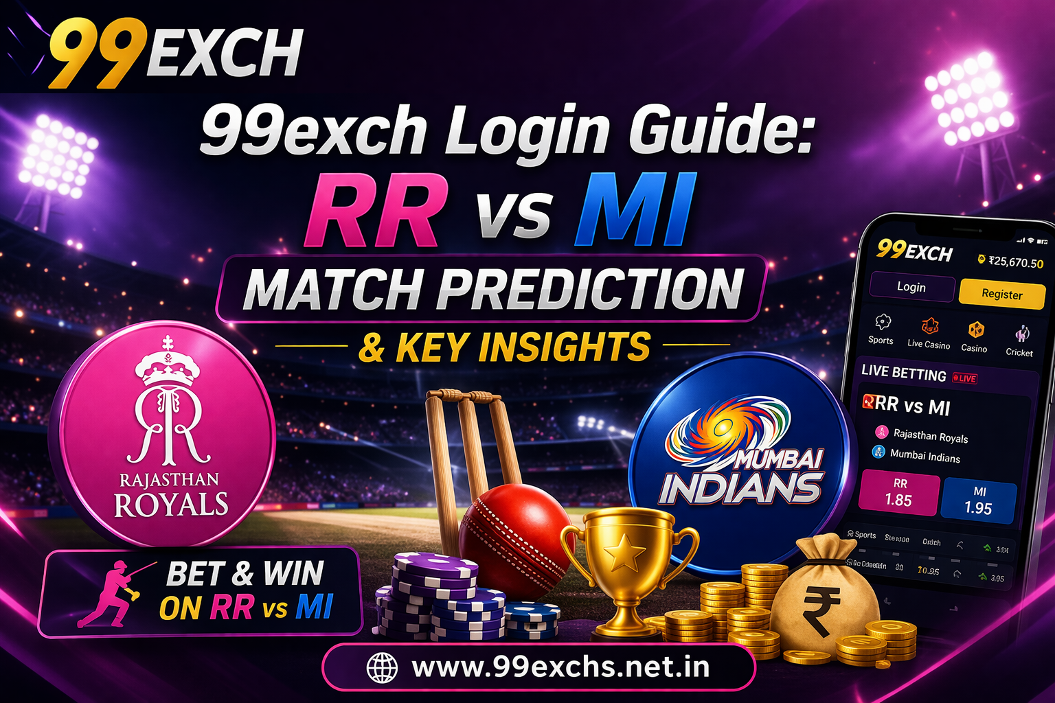 The match between Rajasthan Royals (RR) and the Mumbai Indians (MI) has always been one of the most thrilling games in the IPL. The two teams have a good combination of both experienced players and young talents; hence the match is very unpredictable. Betting websites such as 99exch offer a thrilling experience to its cricket fans and betting enthusiasts by keeping them up to date and informed about the live matches, predictions, and insights. Users can get real-time data with the comfort of 99exch Login and 99exch App, allowing them to improve their experience with matches.