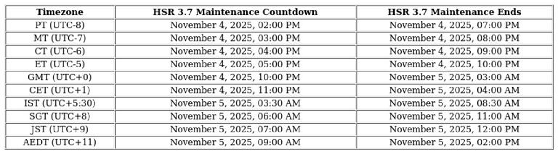 The upcoming maintenance window for Honkai Star Rail version 3.7 has been scheduled.