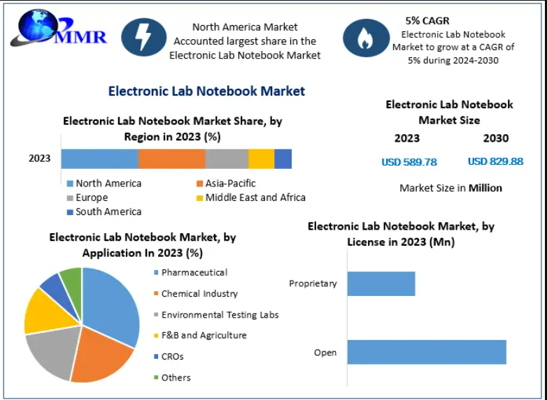 The Global Electronic Lab Notebook (ELN) Market was valued at US$ 589.78 million in 2023 and is projected to reach US$ 829.88 million by 2030, growing at a CAGR of 5% during the forecast period. The increasing need for efficient data management, regulatory compliance, and collaborative research is driving the adoption of ELN solutions across diverse industries.